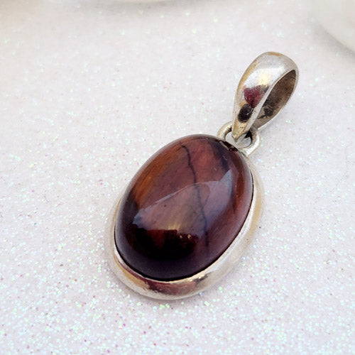 Red Tiger's Eye Oval Pendant (small. sterling silver. pre-loved by Riny)