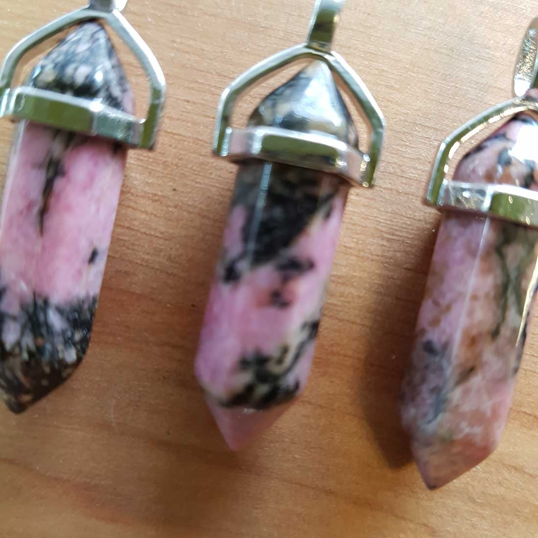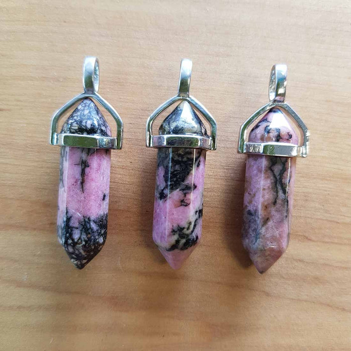 Rhodonite Bullet Point Pendant (silver plate)