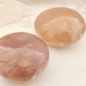 • Will my palm stone look exactly like the photos? Each rose quartz palm stone is naturally unique, so yours may differ slightly in tone, depth of colour, or degree of translucency, but will be similar in overall quality and character.