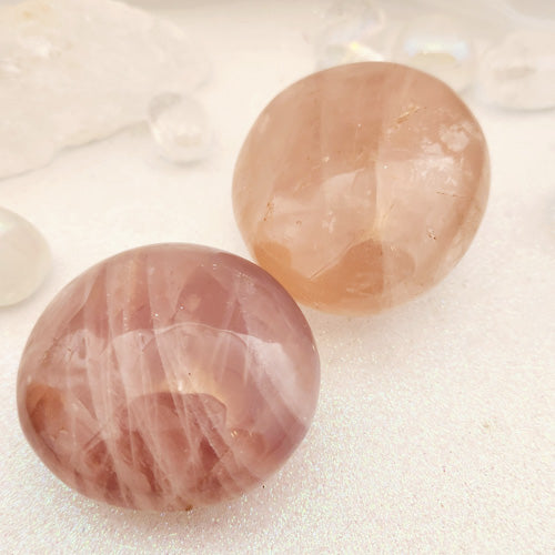 {"id":10174571807030,"title":"Rose Quartz Palm Stone, Assorted","handle":"rose-quartz-palm-stone-3","description":"\u003ch2\u003eRose Quartz Palm Stone — Held in your hands, felt in your heart\u003c\/h2\u003e\n\u003cp\u003eSoftness has a shape, and it fits perfectly in the curve of your palm. The \u003cstrong\u003eRose Quartz Palm Stone\u003c\/strong\u003e is one of those pieces that feels right the moment you pick it up — warm, smooth, and quietly reassuring in a way that is difficult to explain but easy to feel. Rose quartz has been treasured for centuries as a stone of love, and holding it close has long been considered a simple act of comfort and care.\u003c\/p\u003e\n\u003cp\u003eThere is something grounding about the weight of a palm stone in your hand. This particular form invites you to slow down — to breathe, to soften, and to reconnect with what matters. Whether you reach for it during a difficult moment, use it in a \u003cstrong\u003emeditation or breathwork practice\u003c\/strong\u003e, or simply keep it nearby as a reminder of \u003cstrong\u003eself-compassion\u003c\/strong\u003e, the Rose Quartz Palm Stone offers a steady, \u003cstrong\u003egentle presence\u003c\/strong\u003e that never feels demanding. It simply holds space, the way that love at its best always does.\u003c\/p\u003e\n\u003ch2\u003eSome of the Healing \u0026amp; Metaphysical Properties\u003c\/h2\u003e\n\u003cp\u003eRose Quartz is traditionally associated with the following properties:\u003c\/p\u003e\n\u003cul\u003e\n\u003cli\u003e\n\u003cstrong\u003eUnconditional love:\u003c\/strong\u003e Widely regarded as the stone of love, supporting open-hearted connection with both yourself and others.\u003c\/li\u003e\n\u003cli\u003e\n\u003cstrong\u003eSelf-love and worth:\u003c\/strong\u003e Encourages a kinder, more nurturing relationship with yourself, gently shifting self-criticism toward acceptance.\u003c\/li\u003e\n\u003cli\u003e\n\u003cstrong\u003eEmotional healing:\u003c\/strong\u003e Supports the release of old emotional wounds, resentments, or heartache, creating space for greater peace and warmth.\u003c\/li\u003e\n\u003cli\u003e\n\u003cstrong\u003eCalming anxiety:\u003c\/strong\u003e Carries a soft, soothing energy that helps ease anxious or unsettled feelings and encourages a sense of inner calm.\u003c\/li\u003e\n\u003cli\u003e\n\u003cstrong\u003eAttracting love:\u003c\/strong\u003e Traditionally associated with romantic love and harmony, and with nurturing deeper connection in existing relationships.\u003c\/li\u003e\n\u003cli\u003e\n\u003cstrong\u003eCompassion for others:\u003c\/strong\u003e Supports empathy, understanding, and a more tender approach to the people around you.\u003c\/li\u003e\n\u003cli\u003e\n\u003cstrong\u003eGrief and loss:\u003c\/strong\u003e Rose Quartz is one of the most commonly reached-for stones during times of grief, offering a soft and comforting energy that gently holds you through heartache without rushing the process of healing.\u003c\/li\u003e\n\u003c\/ul\u003e\n\u003ch2\u003eAppearance \u0026amp; Structure\u003c\/h2\u003e\n\u003cp\u003e\u003cstrong\u003eApprox. Size: 6-6.8 x 5.5-5.8cm\u003c\/strong\u003e\u003c\/p\u003e\n\u003cp\u003e\u003cstrong\u003eRose quartz\u003c\/strong\u003e is a variety of \u003cstrong\u003equartz\u003c\/strong\u003e — a silicon dioxide mineral — and gets its distinctive colour from trace amounts of titanium, iron, or manganese within its structure. It belongs to the trigonal crystal system and is typically found in \u003cstrong\u003emassive\u003c\/strong\u003e form rather than as distinct crystals, which makes it well suited to being shaped and polished into smooth, handheld pieces like palm stones.\u003c\/p\u003e\n\u003cp\u003eIn colour, rose quartz ranges from the palest, almost \u003cstrong\u003emilky blush-white\u003c\/strong\u003e through to deeper \u003cstrong\u003edusty rose and warm pink\u003c\/strong\u003e tones. Most pieces sit in the soft, muted mid-range — a gentle, \u003cstrong\u003ecloudy pink\u003c\/strong\u003e that has a warmth and translucency to it when held up to the light. \u003cstrong\u003eNatural variation\u003c\/strong\u003e is to be expected: some pieces will be lighter or more translucent, others deeper and more opaque, and many will carry subtle \u003cstrong\u003eclouding, wispy inclusions\u003c\/strong\u003e, or faint natural banding. These are the natural characteristics of genuine rose quartz and part of what makes each stone individual. The polished surface of a palm stone gives the colour a soft luminosity that is particularly appealing in this form.\u003c\/p\u003e\n\u003ch2\u003eHow You Can Use Your Palm Stone\u003c\/h2\u003e\n\u003cul\u003e\n\u003cli\u003e\n\u003cstrong\u003eHold for calm:\u003c\/strong\u003e Keep your palm stone close during stressful moments and hold it in your hand to help bring your breath and nervous system back to a quieter place.\u003c\/li\u003e\n\u003cli\u003e\n\u003cstrong\u003eMeditation support:\u003c\/strong\u003e Hold the palm stone in one or both hands during meditation or breathwork to anchor your practice with a grounding, heart-centred focus.\u003c\/li\u003e\n\u003cli\u003e\n\u003cstrong\u003ePlace on the body:\u003c\/strong\u003e Lie quietly and rest the palm stone on your chest or heart area to support a sense of warmth, emotional ease, and openness.\u003c\/li\u003e\n\u003cli\u003e\n\u003cstrong\u003eKeep within reach:\u003c\/strong\u003e Place your palm stone on your desk, bedside table, or anywhere you spend time, so its soft energy is always close when you need it.\u003c\/li\u003e\n\u003cli\u003e\n\u003cstrong\u003eIntention setting:\u003c\/strong\u003e Hold your palm stone while you set a personal intention — love, self-acceptance, healing, or calm — to carry that focus into your day.\u003c\/li\u003e\n\u003cli\u003e\n\u003cstrong\u003eComfort during difficulty:\u003c\/strong\u003e Reach for your palm stone during hard conversations, anxious moments, or times of 