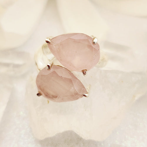 Rose Quartz Twin Tear Drop Ring (sterling silver)