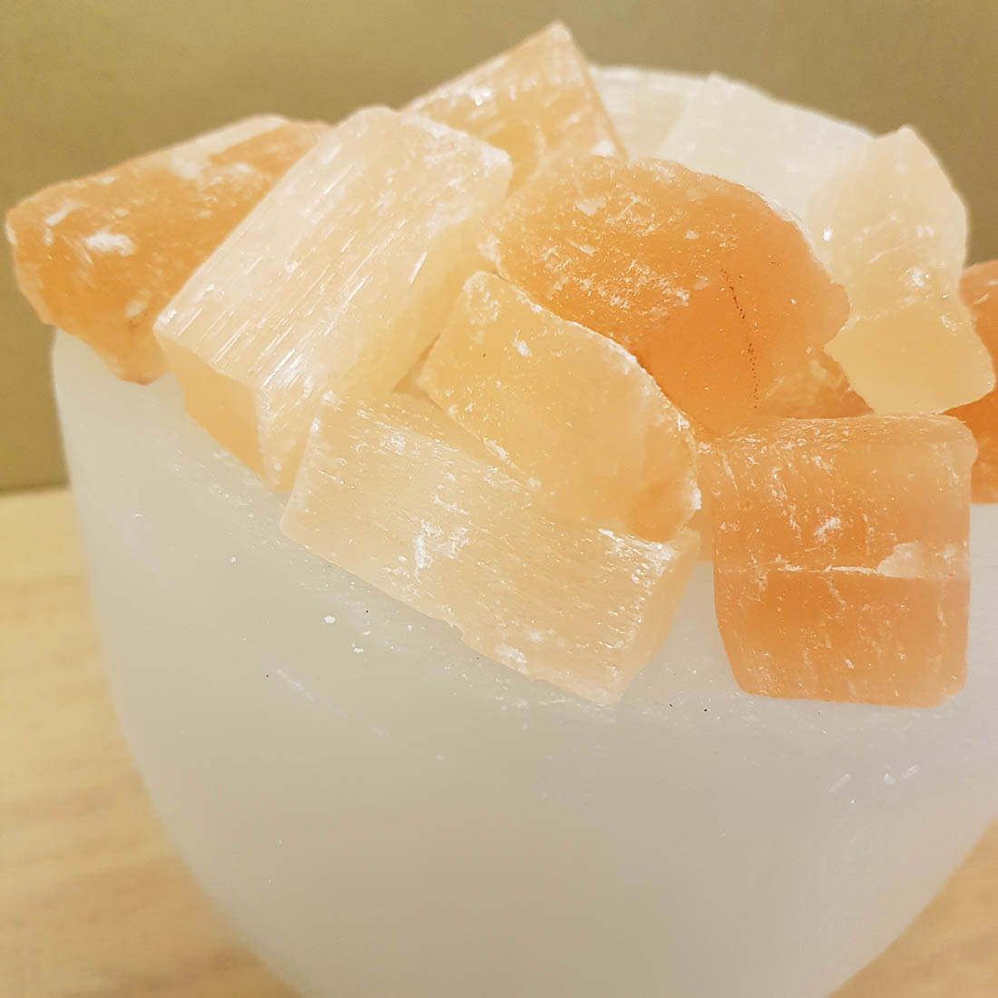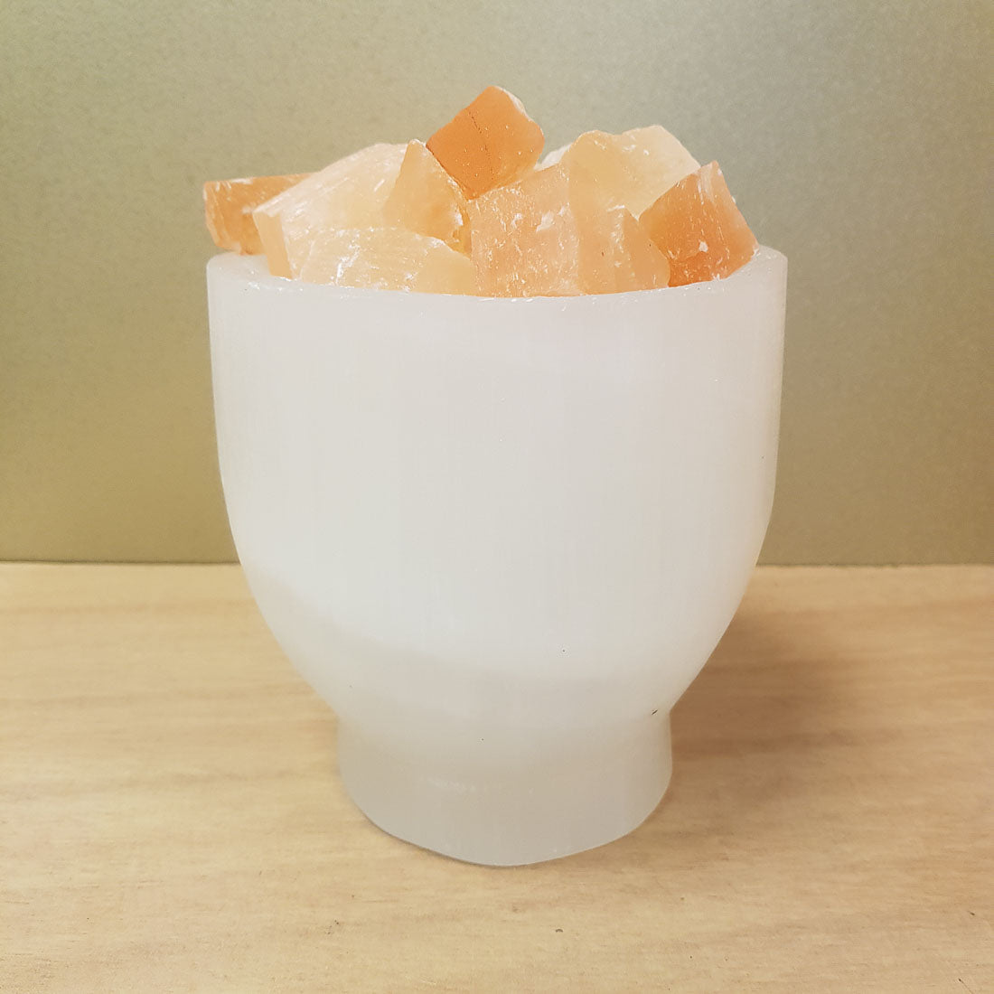 Selenite Fire Bowl Lamp. (assorted approx. 15x13cm)
