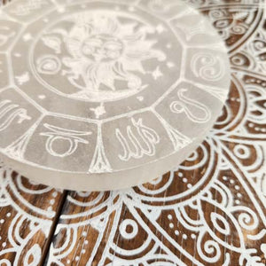 Selenite Zodiac Charging Plate (assorted. approx. 10.2-10.3x1.6cm)