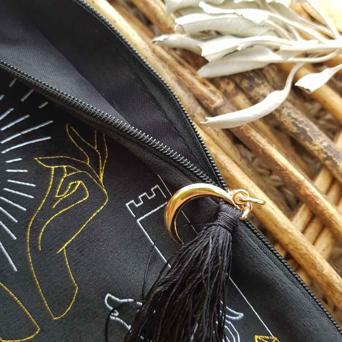 'The Moon' black velvet tarot bag ideal for holding your special tarot deck.