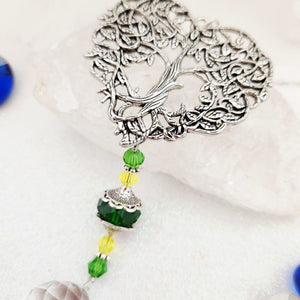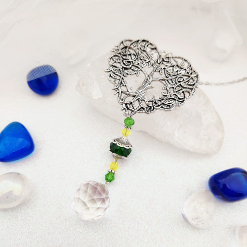 Tree of Life Heart w. Hanging Prism & Beads (alloy & glass)