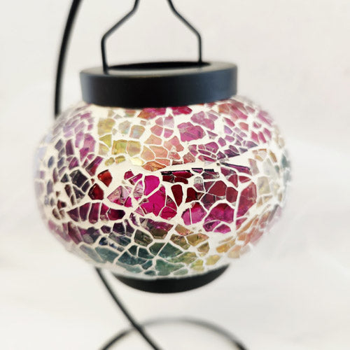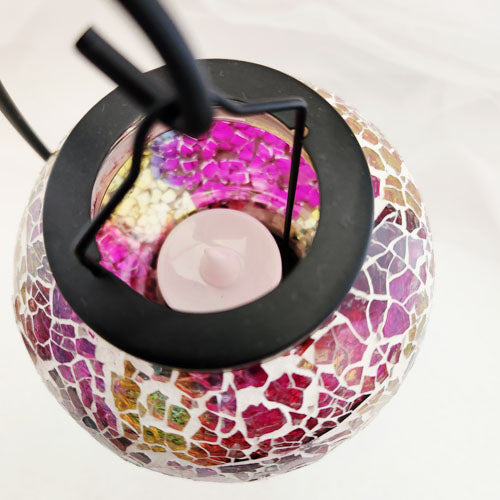 Autumn Tones Turkish Mosaic Hanging T-Lite Candle Holder w. LED Candle (approx. 24x15cm)